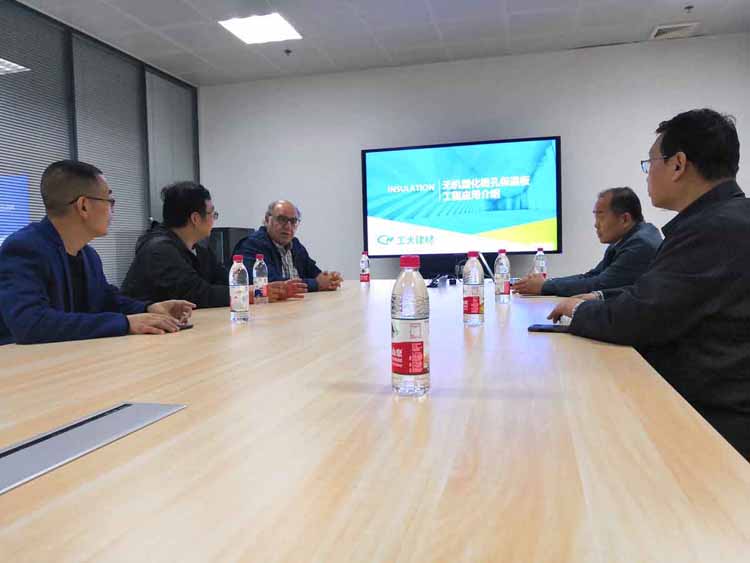 約旦ACC公司采用美國陶氏公司技術(shù)生產(chǎn)有機(jī)類保溫材料,產(chǎn)品廣泛應(yīng)用于中東建筑市場,但因達(dá)不到A級(jí)燃燒等級(jí),近期在沙特的建筑工地二次引發(fā)了火災(zāi)。 為了盡快找到替代產(chǎn)品與生產(chǎn)技術(shù), ACC公司制造主管HANI ABU KHALAF先生到公司進(jìn)行了商務(wù)與技術(shù)交流,公司總經(jīng)理趙振波先生與技術(shù)團(tuán)隊(duì)參加了交流??蜕虒狙邪l(fā)的無機(jī)塑化微孔保溫板項(xiàng)目表示了極大的合作興趣。
