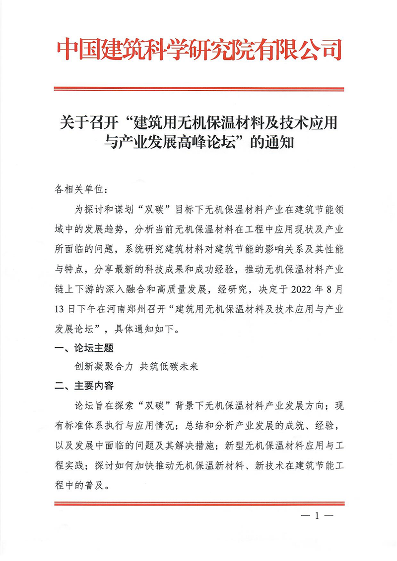 關(guān)于召開“建筑用無機保溫材料及技術(shù)應(yīng)用與產(chǎn)業(yè)發(fā)展高峰論壇”的通知